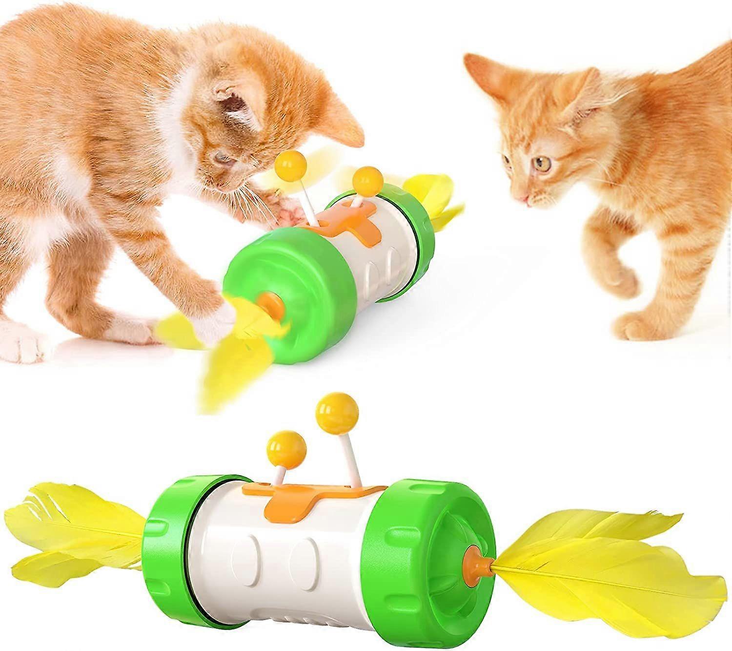Indoor Interactive Cat Toy, Automatic 360 Degree Self Rotating Toy, Funny Cat Ball That Can Move Up and Down, Pet Exercise Feather Toys
