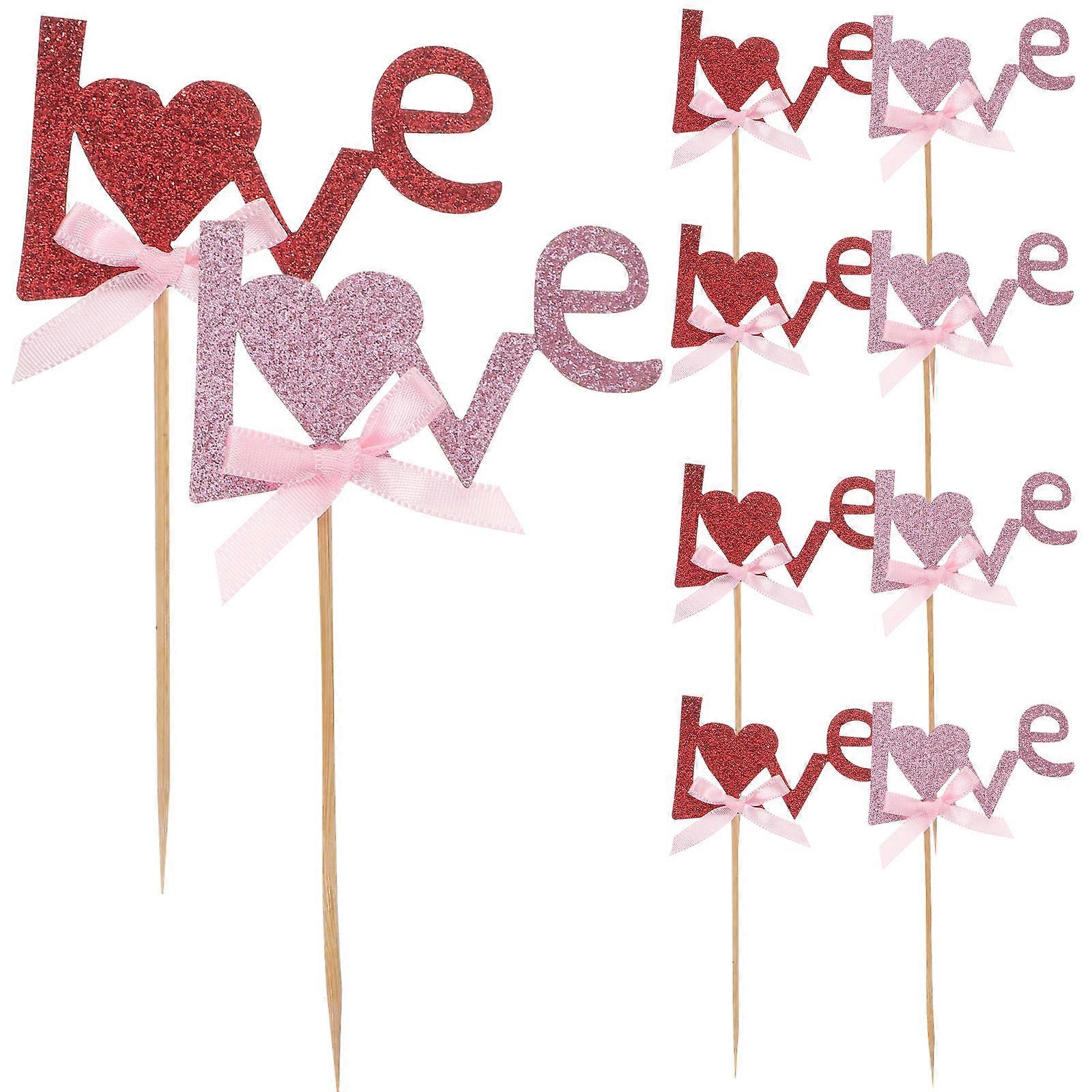 Valentines Day Cake Picks Beautifully Designed Paper and Bamboo Decorative Fruit Picks for Dessert 40 Pcs