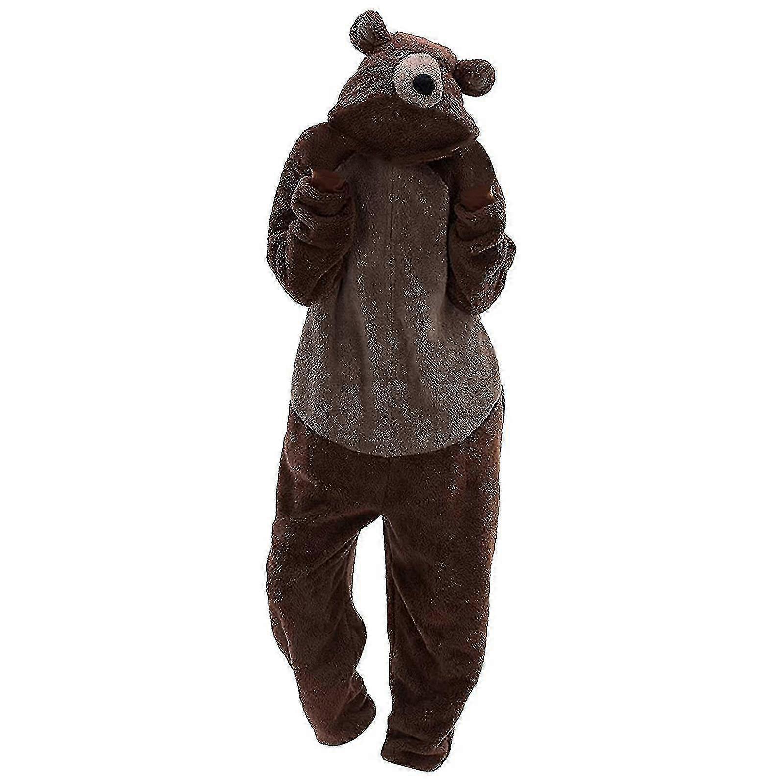 Unisex Adult Bear Sleepwear Onesie Winter Pocket Loose Funny Thick Pajamas