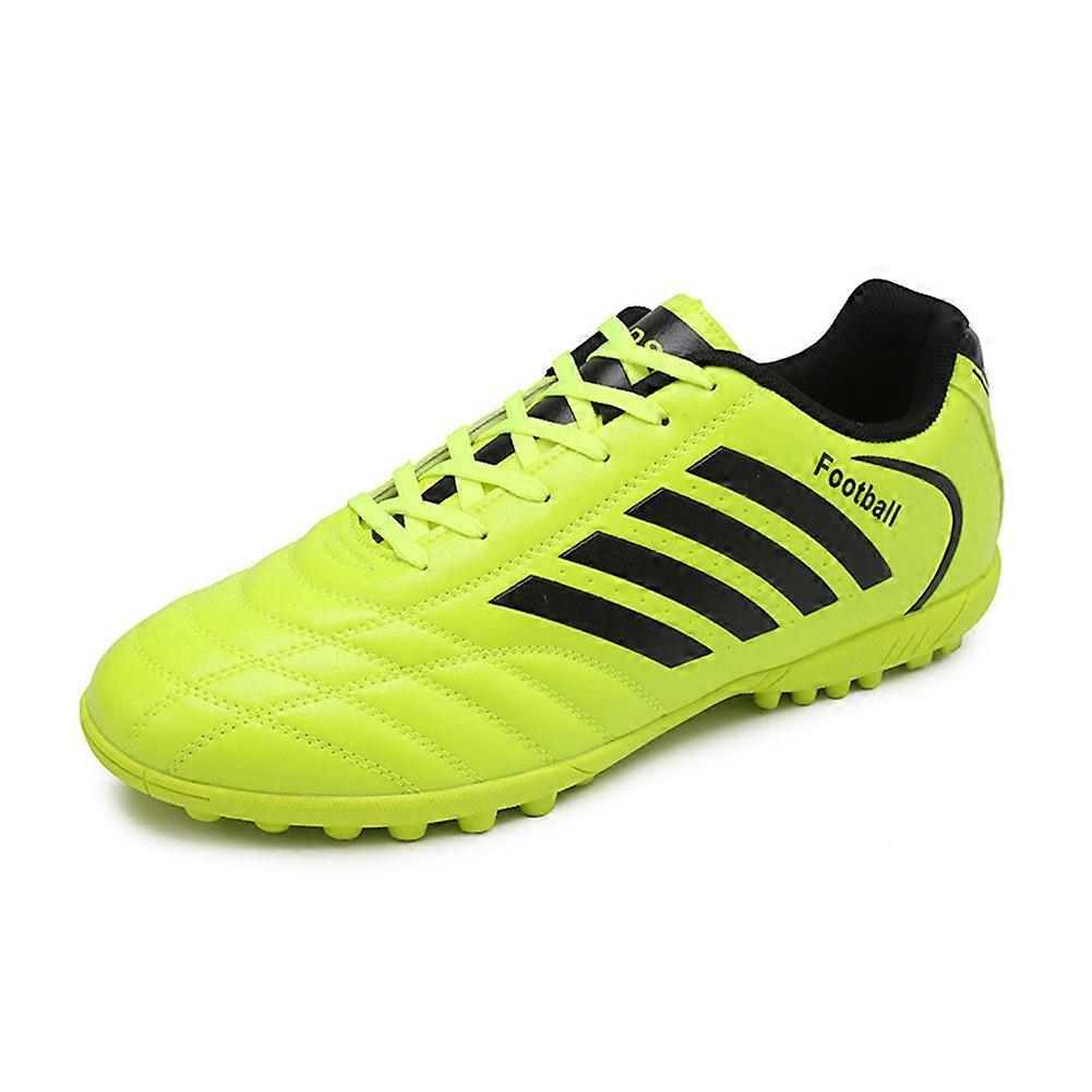 Rubber sole, light, soft and comfortable design, suitable for your child. Durable synthetic upper is textured for better ball handling. Traditional lace-up design provides a snug fit, allowing you to tie and tie every part of the boot as needed. Flexible rubber outsole in two-tone design with sturdy studs to help provide traction on turf and outdoor fields. Thickened collar and footbed make these shoes very comfortable. Wear them during long races and practice sessions without discomfort. Please check the size chart attached at the end of the picture group. If your size is between the two sizes, we strongly recommend customers to size up. Size: 35--44