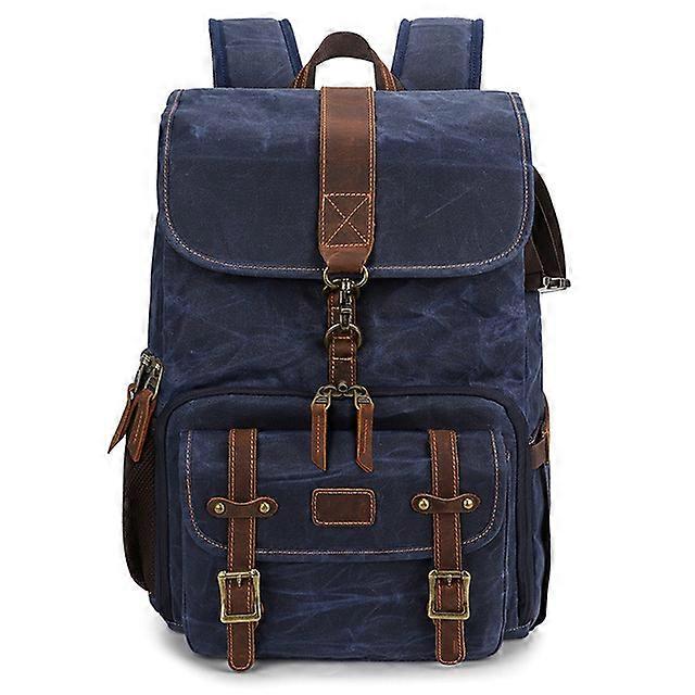 Waterproof Photography Retro Batik Canvas Leather Backpack fit 15.4inch Laptop Men Camera Bag Travel Case for Canon Nikon DSLR