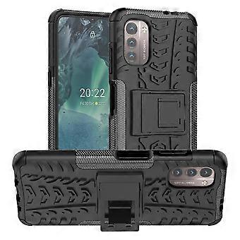 For Nokia G11/g21 Shockproof Anti-fall Tire Pattern Design Cover Pc + Tpu Hybrid Rugged Armor Phone Case With Built-in Kickstand - Orange_FM18