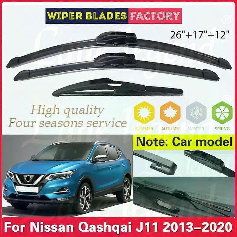 For Nissan Qashqai J11 2013 2014 2015 2016 2017 2018 2019 2020 26"17"12" Front Rear Wiper Blades Window Brushes Car Accessories