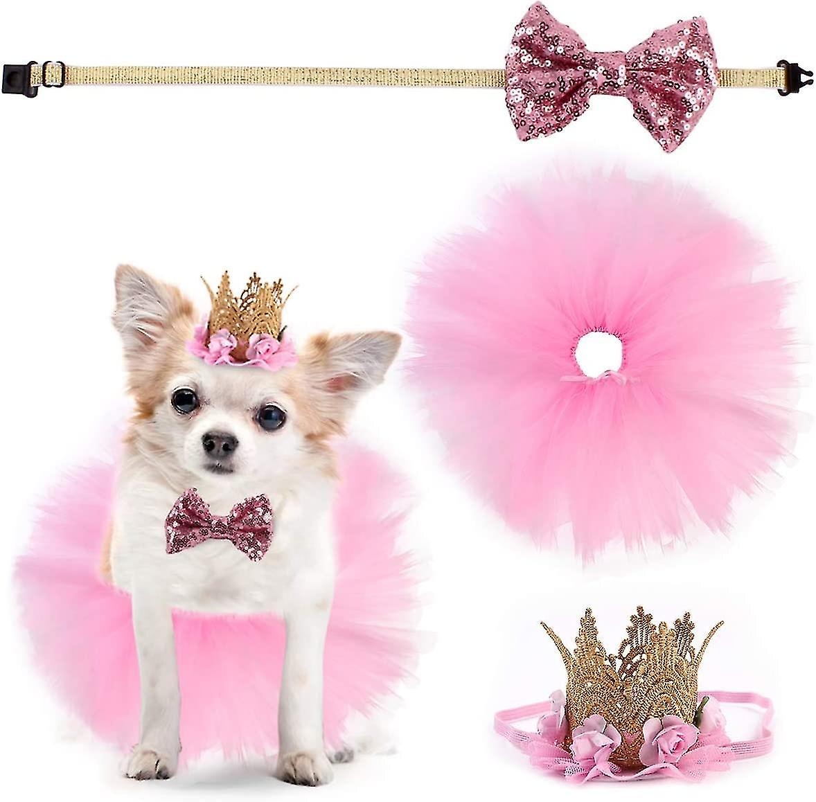 Pet Birthday Party Supplies - Bow Tie Tutu Skirt Crown Hat And Sequin Bow Tie For Puppy Cat Girl Pin
