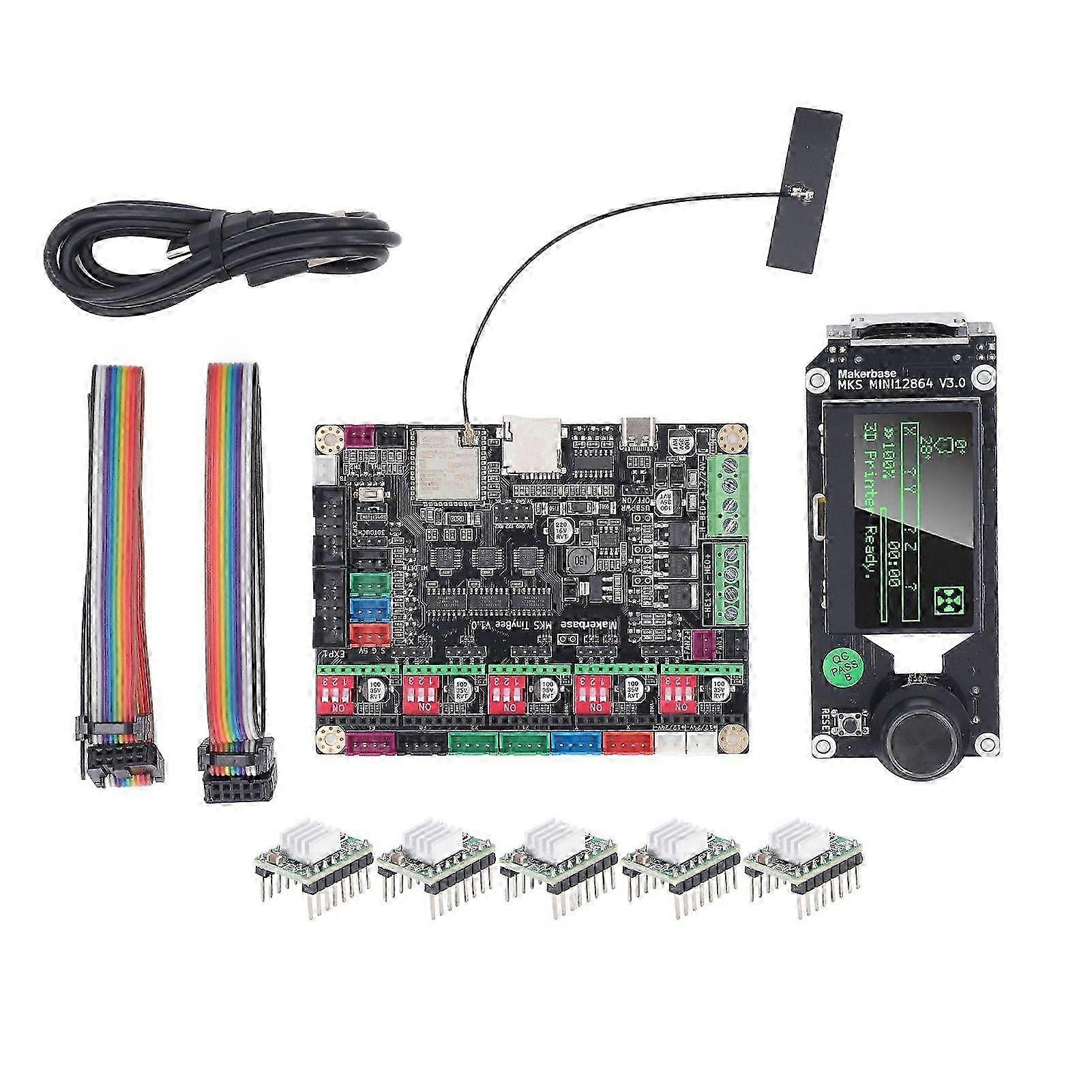 20AHeater: 2 Heater ends and 1 heater bedTemperature ADC: 3 NTC100K: TH1, TB, TH2(jumper selection required)Motor Interface: 5 Axes 6 motor interface (double Z axes parallel)Step Driven Mode: STEP or DIR MoodeDrive Signal: Support external high current driveSubdivision Setting: DIP switchLCD Port: Support LCD 2004 or 12864, for MKS MINI12864 V3Serial Port: For MKS TFT series screen reserved USART2Terminal Stop: X, Y, Z, MT_DET3D Touch: SupportedPower Protection: Support power reverse protection and power surge protectionMotor Back Electromotive Force: Can be absorbed by the phase sequence resistance to protect the stepper driverFirmware: For Marlin 2.0.xFirmware Update Mode: USB flash drive uploadSmall Memory Card: Not includeFor MKS Mini12864 V3.0 LCD Graphic Smart Display: Model: For MKS Mini 12864 V3Material: PCBLogic Level: Support 3.3V, 5V logic inputBacklight Mode: For Neopixel RGB adjustable backlightBacklight Adjustment: Light - slight preset(for Martin)Applicable Firmware: For Marlin 2.0, for KlipperApplicable Motherboards: For MKS Robin V2, V3, for SgenlV1, v2, Genl, for Robin E3Features: Use the built in memory card(not include) slot.Compatible with both 3.3V and 5V logic signals.Support for Gcode backlight Settings, such as M150 R100 G100 U100.Support for MKS Robin V2, V3, for Sgen IV1, for Sgen V2, for GenI, for Robin E3.The for MKS MINI 12864 V3 smart display has an RGB backlight and support online change of backlight color via LCD.Supports color changes in different states during the printing process.SPI communication with the host microcontroller.For Klipper Marlin 2.0 firmware is supported.A4988 Driver Description: The A4988 is a complete microstepper motor driver with a built in converter for easy operation. Bipolar stepper motors can be operated in full step, half step, 1 or 4, 1 or 8 and 1 or 16 step modes with output drive capabilities up to 35V and 2A. The A4988 includes a fixed turn off time current regulator in slow or mixed attenuation mode. The A4988 converter is the key to easy implementation. The "stepping" input drives the motor one micro step forward by inputting a pulse. There are no phase sequence tables, high frequency control lines, or complex programming interfaces. The A4988 interface is ideal for situations where complex microprocessors are unavailable or overburdened.A4988 Driver Features and Benefits: Low RDS(on) output Automatic current attenuation mode detection, selection Mixed with slow current attenuation mode Synchronous rectification, low power consumption Internal undervoltage lock Cross flow protection 3.3 and 5 V compatible logic power supply Heat off circuit Ground fault protection Load short circuit protection Five Step Modes Are Available: Full step, 1 or 2, 1 or 4, 1 or 8 and 1 or 16.Package List:1 x Control Panel1 x USB Cable1 x Display Screen(memory card side insert version)2 x 10 Pin Colorful Flexible Flat Cable5 x A4988 Stepper Motor Driver5 x Driver Heat Sink