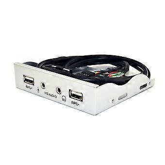 2 Port USB 2.0 HUB 3.5mm Earphone Jack Front Panel Silver White