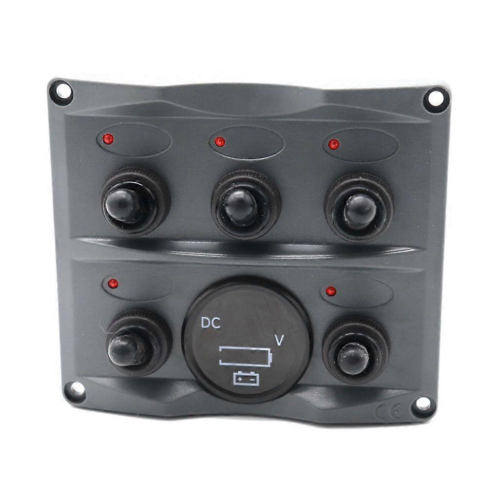 Wearproof Marine Boat Yacht Rocker Switch Panel with 5 Buttons Digital Voltmeter