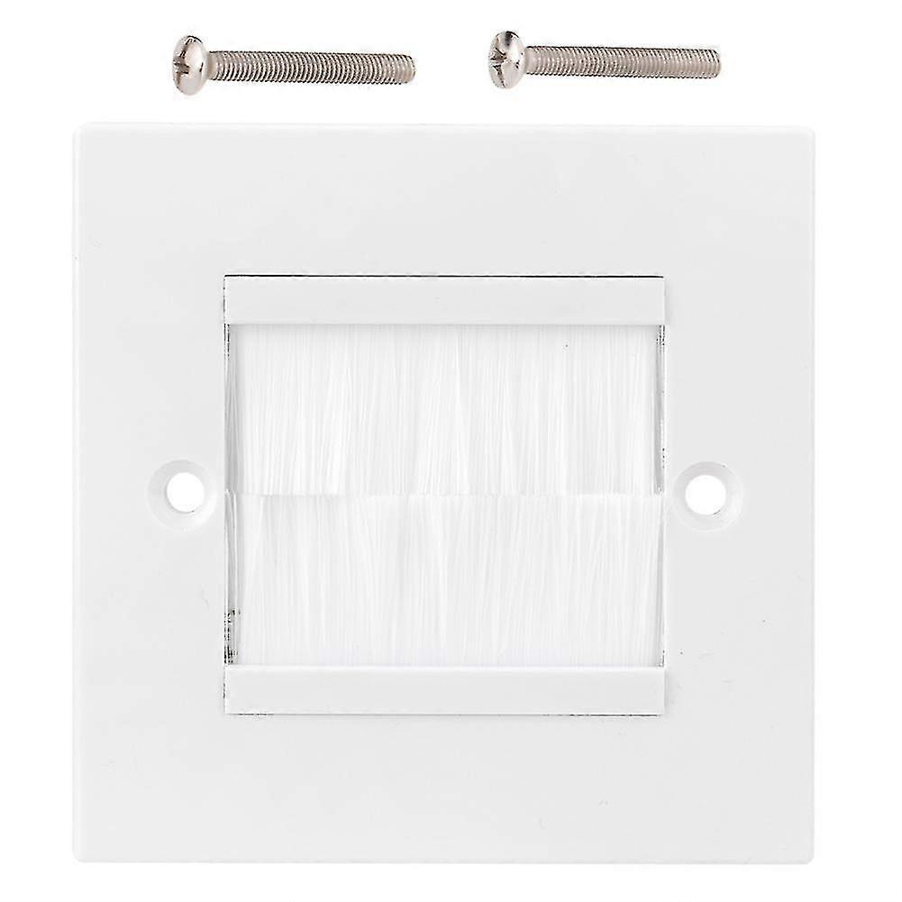 White Cable Entry Brush Wall Plate - Easy Install Durable Plastic Concealed Wiring Panel for Home Office AV System
