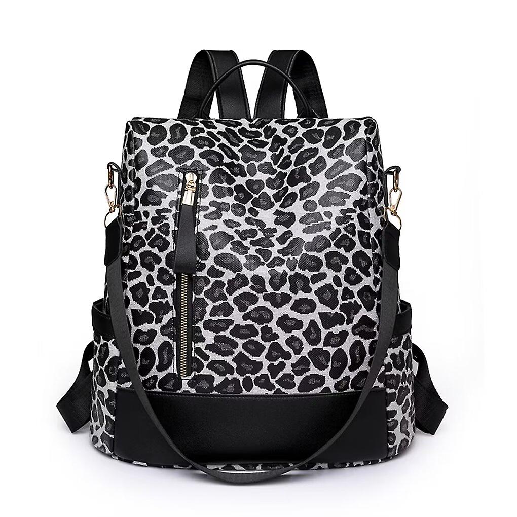 Soft Leather Leopard Backpack Shoulder Bag Women Trendy Large Capacity Anti-theft Travel Bag