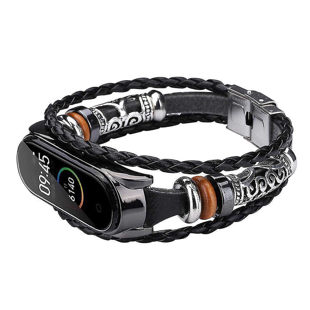 For Mi Band 4 Replacement Leather Beading Bracelet Strap Weave