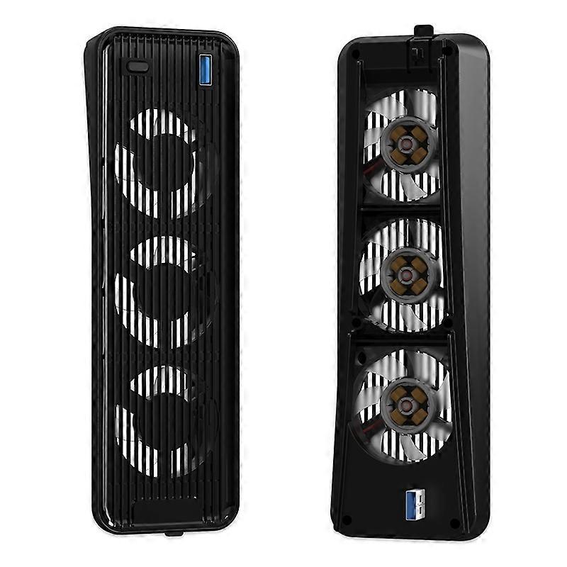 For PS5 Game Console ABS Cooling Fan 2-Gear Wind Heat Dissipation USB Fan Cooler - Black Easy installation,plug and play Real machine mold opening,perfect size matching Three large blade fans provide efficient cooling,protect the game console,and provide long-lasting game play Ultra-low noise,giving you a quiet and comfortable gaming environment Stylish appearance,high quality and long lifespan Specification: Rated voltage: DC 5V Starting voltage: DC 2.8V Rated current: 0.6A Rated power: 3W Rated speed: 5500 RPM Fan size: 50*50*10mm*3 Package included: 1 x Cooling Fan 1 x Cable 1 x English and Chinese User Manual Other items not included