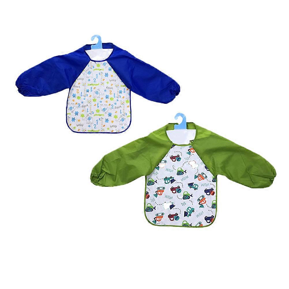 Cartoon Art Aprons 2 Pcs Waterproof Long Sleeve Kids Smock For 3 To 8 Years Old 18.1 X 13.4 Inches Designed For Art Activities