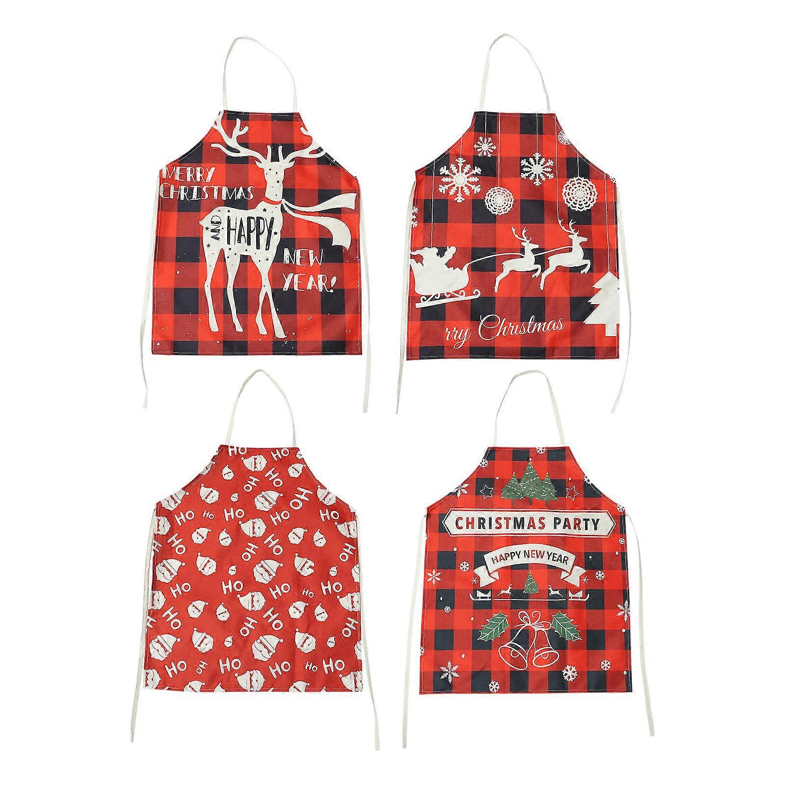 Cute Aprons Assorted Color Christmas Theme Baking Cooking Barbecue Gardening Restaurant Use 4Set