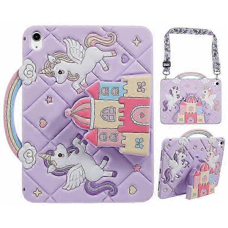 Compatible For iPad 10.9 (2022) Silicone Case Horse Castle Pattern Kickstand Tablet Cover with Strap