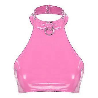 Sexy Womens Crop Top Fashion O Ring Halter Vest Backless Sleeveless Patent Leather Tank Tops For Party Club Music Festival