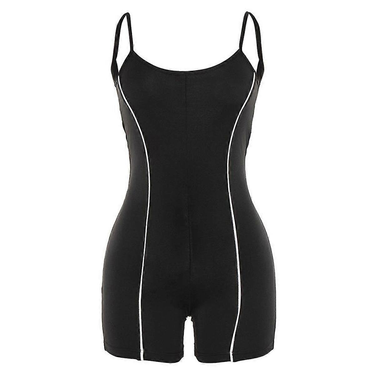 Sexy Women Strap Jumpsuit Backless Fluorescence Color Rompers(Black M)