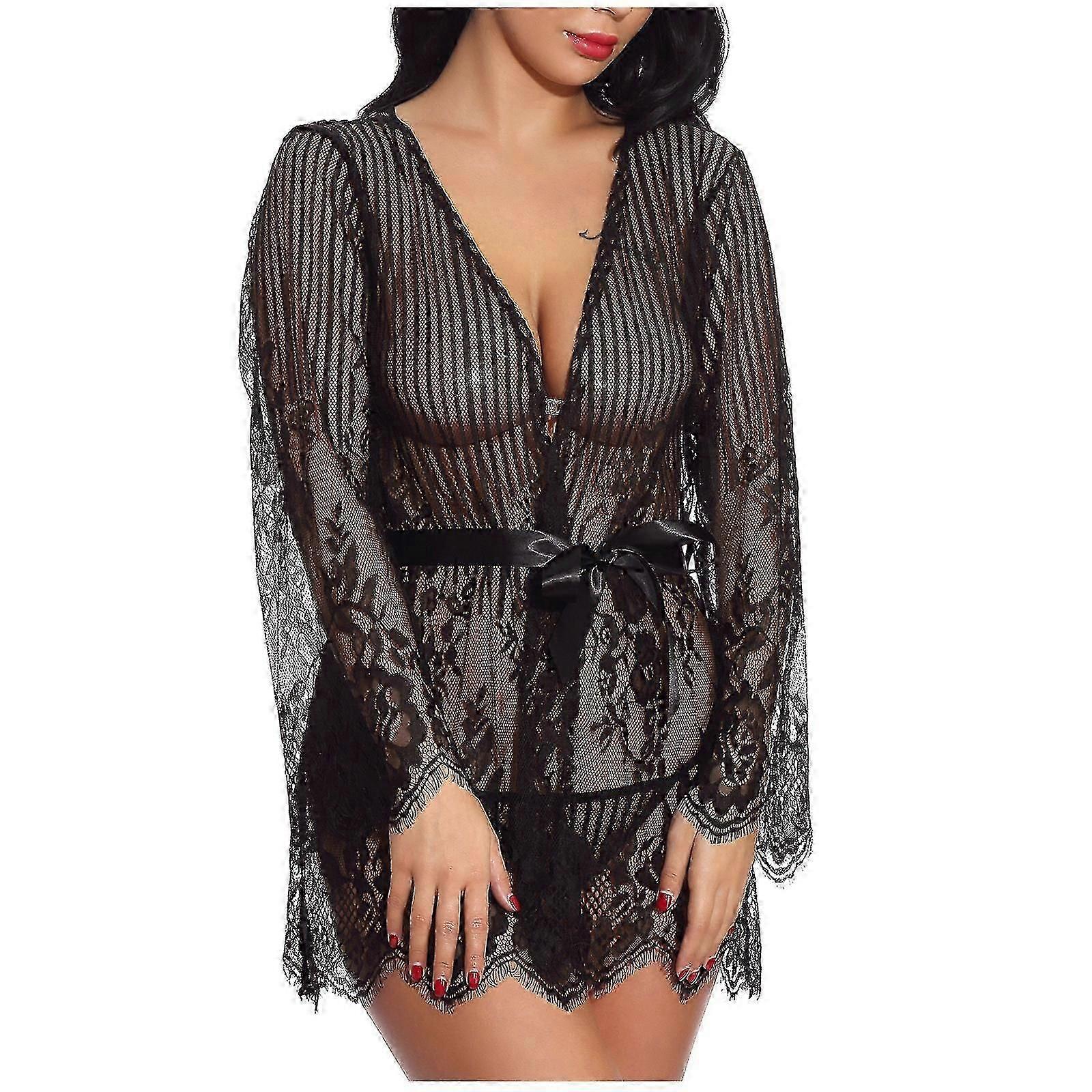 Sexy Underwear Lace Transparent Front Cardigan Pajamas Women's Sexy Suspender Nightdress