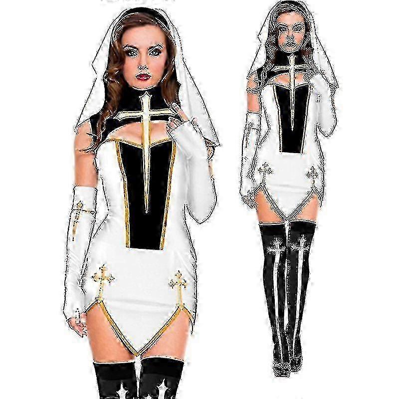 Sexy Nun Senior Costume Carnival Halloween Church Religious Convent Cosplay Fancy Party Dress