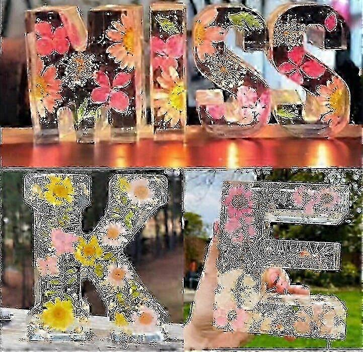 Dried Flower Resin Letter Light, 26 Letters Optional, LED Night Light Decoration