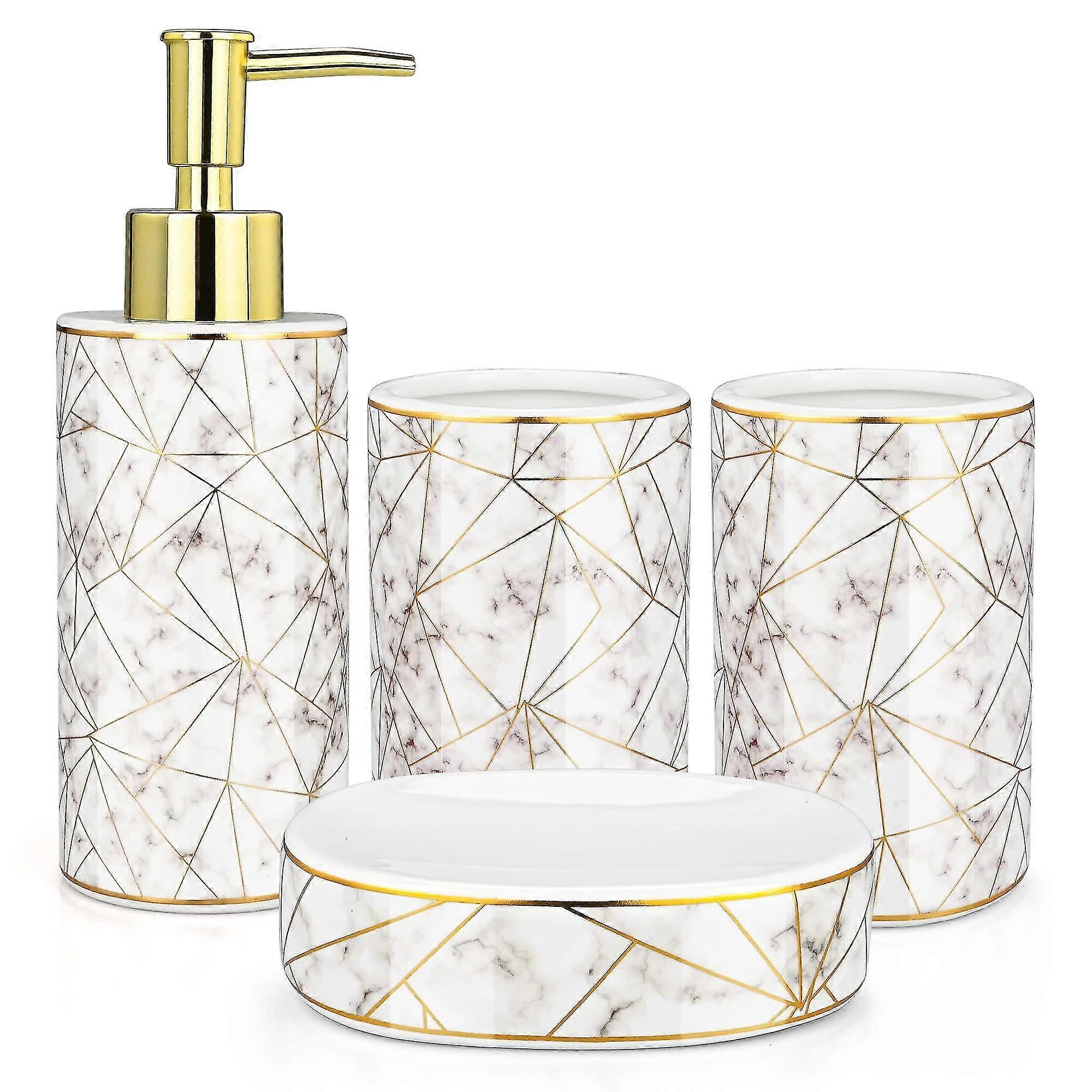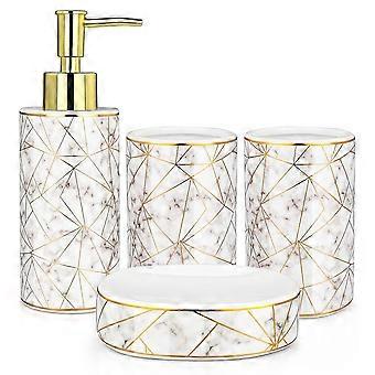 Bathroom Accessories Set,4 Piece Ceramic Bath Accessory Set Includes 2Pcs Toothbrush Holder/Tumbler,300ml Liquid Soap or Lotion Dispenser & Soap Dish