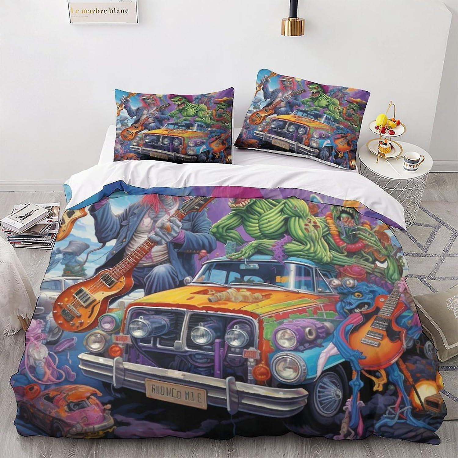 LikeEj Monsters Bedding Set,3D vintage car Quilt Duvet Cover Sets,cartoon Bed Cover Soft,cartoon Duvet Set with Zipper Double