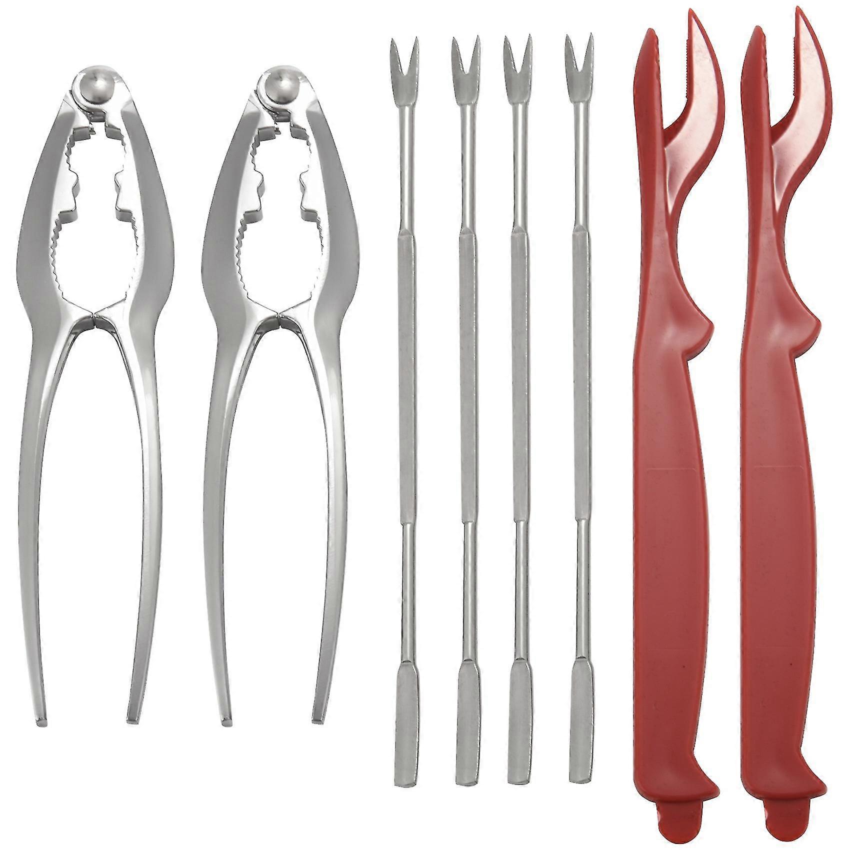 Seafood Set 2 Crab Clip 2 Plastic Pick 4 Stainless Steel Forks 8pcs