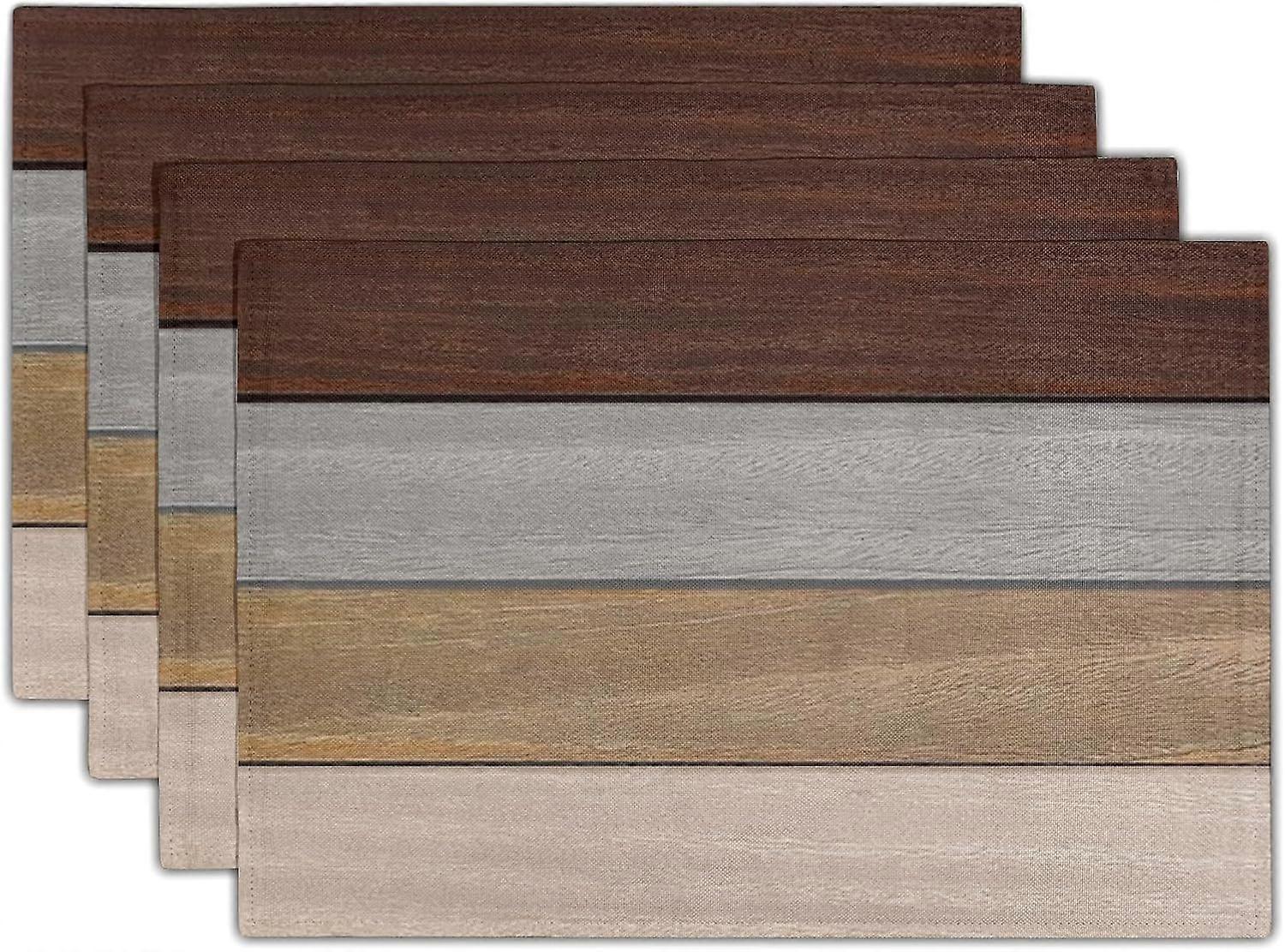 Rustic Wood Placemats Set of 4, 12 X 18 in Brown Grey Retro Wooden Board Washable Table Mats Non-Slip Heat-Resistant Place Mat for Dining Room and Kit