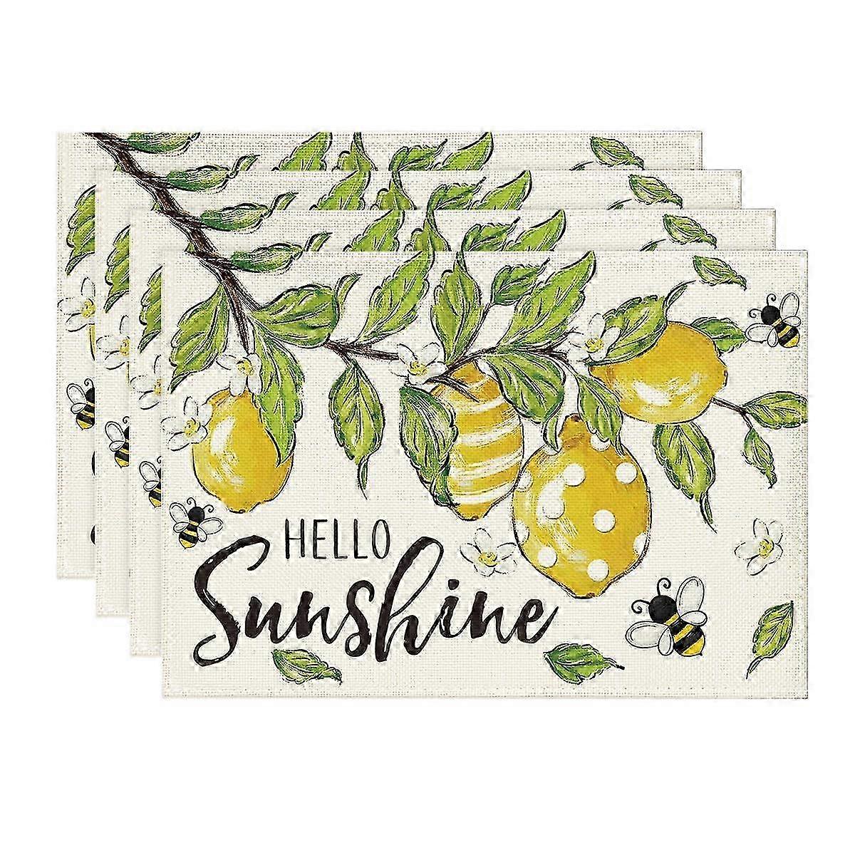 Lemon Bee Leaves Placemats Set of 4, 12x18 Inch Table Mats for Kitchen Dining