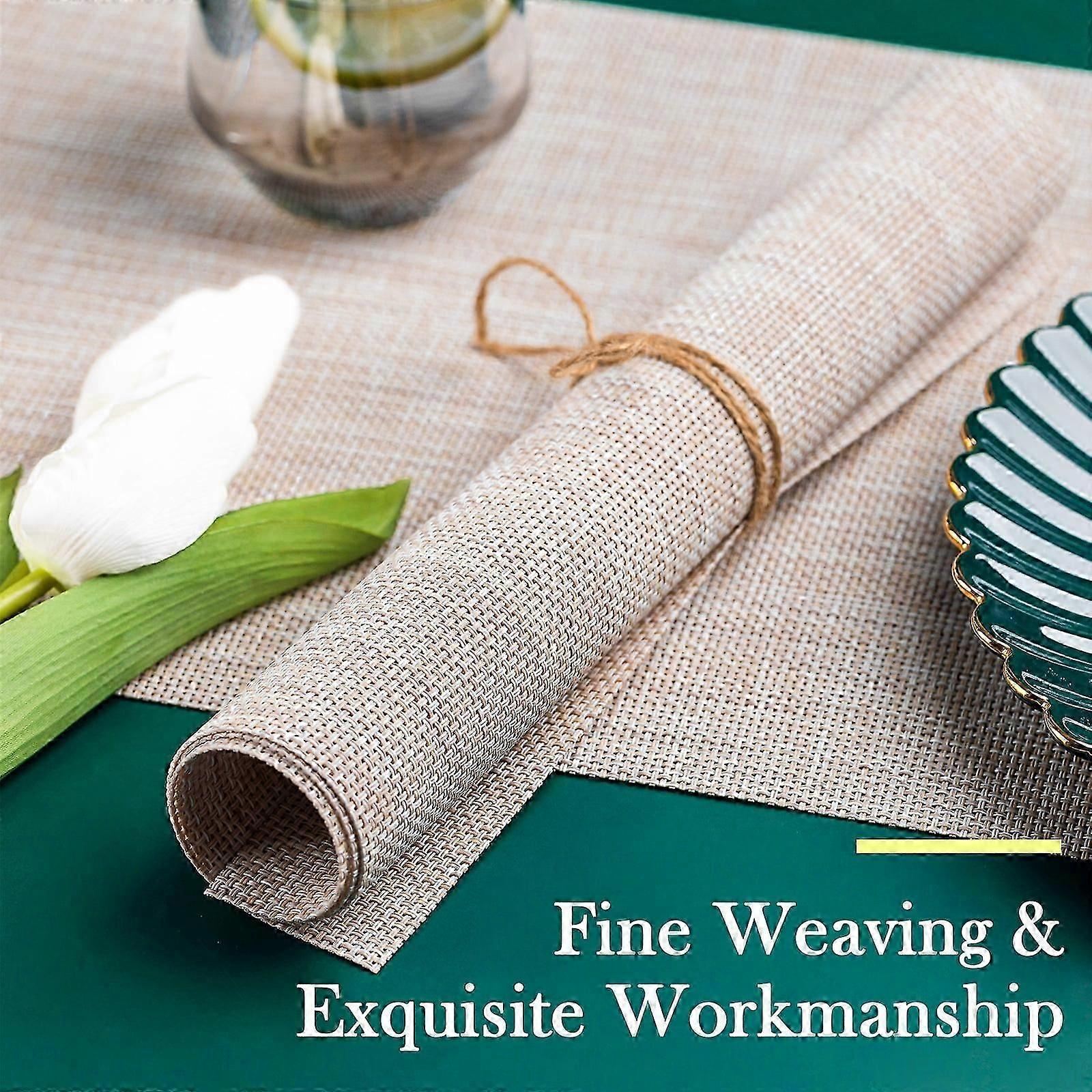 Transform your dining table into a stylish work of art with our woven PVC placemats! Crafted with the perfect blend of form and function, these placemats are not just a feast for the eyes but also a practical addition to any home. Made from high-quality PVC, these placemats are durable and easy to clean, ensuring that they will withstand the wear and tear of everyday use. The woven design adds a touch of elegance to your table setting, elevating even the most simple meals to a whole new level. With a range of colors to choose from, these placemats are perfect for any occasion, whether it's a casual brunch with friends or a formal dinner party. And best of all, they are completely customizable, allowing you to mix and match to create your own unique table setting. So why settle for boring and bland when you can have beautiful and practical? Upgrade your dining experience with our woven PVC placemats! Professional Quality:Made of Germany imported high-quality vinyl (70% PVC + 30% polyester), Koncle placemats offer washable and easy-to-clean versatility with durable functionality, make every meal more fun and protect your dining table at the same time. Washable & Easy to Clean:Wipe clean with soap, water and sponge. Air dry. What's more, our place mats Max heat-resistant temperature is to 176F (80C), We recommend that you do not iron our table mats. Classic Size :From lunch on the patio to meals in the indoor kitchen and outdoor, perfect natural colors of placemats for you to choose, Classic 17" x 11.5" size, making it a great option for any table's centerpiece. Best Gift Guide:Use Koncle place mats for Mothers' Day, Christmas, birthdays, housewarming, holiday, parties, family gatherings, weddings, showers, and more. Great for everyday use indoor or outdoor.