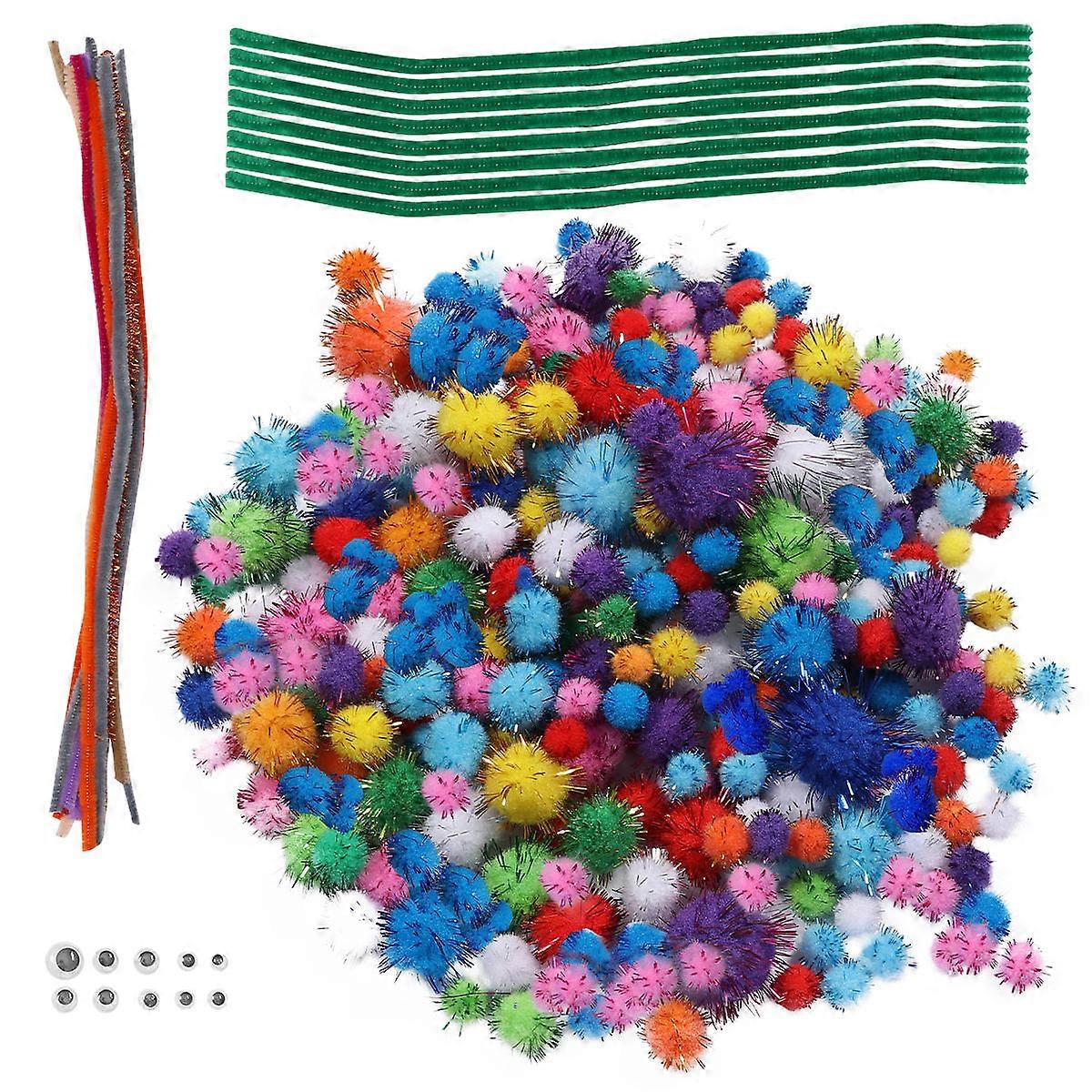 Glitter Pompones DIY Craft Kit with Glitter Balls, Fluffy Sticks & Eyes for Christmas & Party Decorations