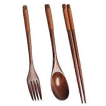 Wooden Flatware Set, Spoon Fork Chopsticks with Khaki Twining Thread
