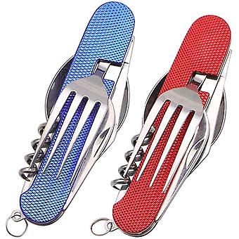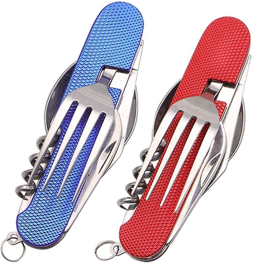 Folding Camping Cutlery Set Stainless Steel Portable Utensil 6 in 1 Multitool Outdoor Survival Trave