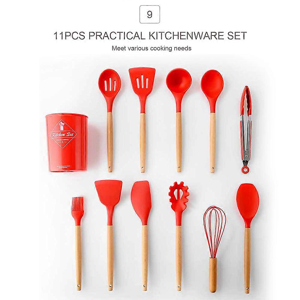Kitchen Utensils Set 11Pcs Silicone Utensils Kitchenware for Non-stick Pot Silica Gel Cooking Utensils Set Utensil Wooden Handle Kitchenware