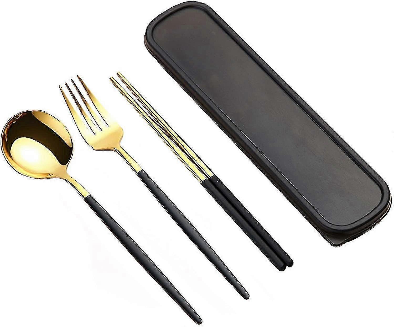 Portable Camping Tableware Set with 3 Pcs Stainless Steel Spoons, Chopsticks, and Forks for Outdoor Use