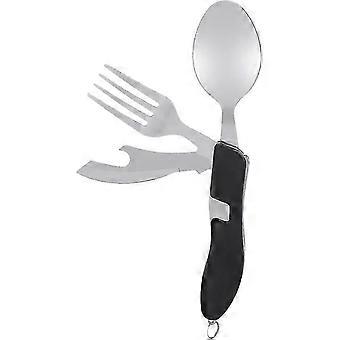 مجموعة أدوات مائدة أدوات المائدة لأواني التخييم القابلة للفصل ، أجهزة السفر المحمولة المصنوعة من الفولاذ المقاوم للصدأ أربعة في واحد ، سكين قابل للطي ، شوكة ، فتاحة زجاجات ملعقة ، متعدد فو