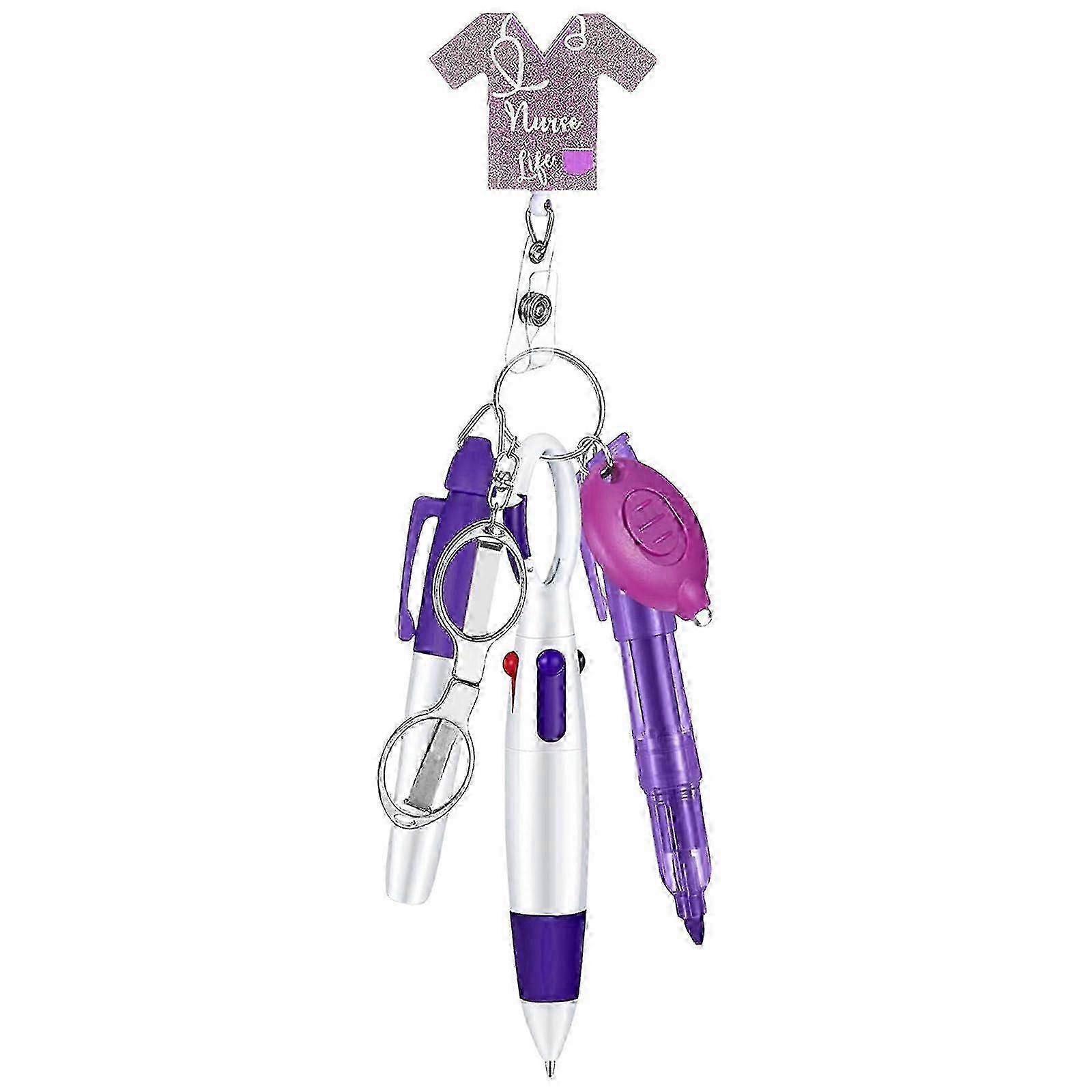 Comprehensive Nurse Stationery Set, Practical Pen Set with Delicate Writing Instruments and Badge Accessories Purple