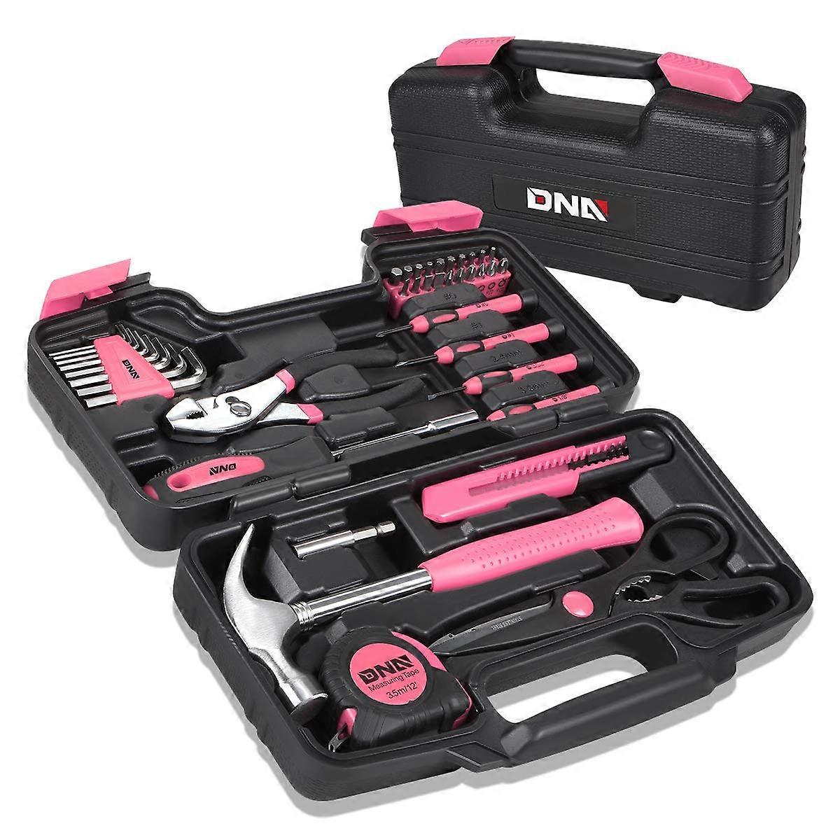 39-Piece Household Tool Set General Repair Small Hand Tool Kit Storage Case for Home Garage Office College Dormitory Use, Pink, TOOLS-00009