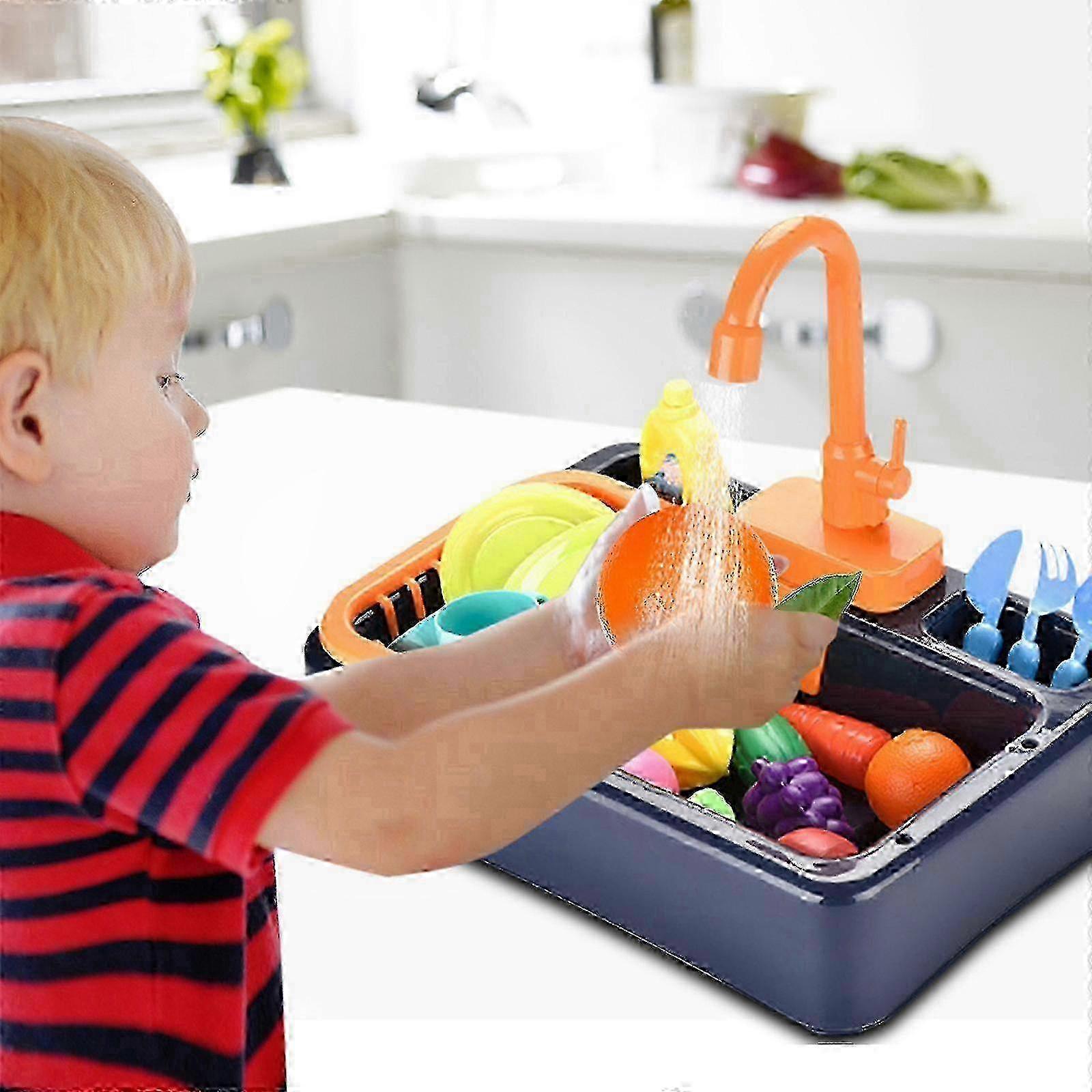 19PCS Kitchen Sink Toys with Running Water Educational Gifts for Girls Boys Feature: Simulated Kitchen ToysThe kitchen toys are designed with a large sink, and comes with a variety of tableware, vegetables and fruits. Baskets are used to dry and store these toys, and each toy has a corresponding placement to keep the simulated kitchen tidy. For one or more person to role play kitchen toys Safe and Durable MaterialOur kitchen sink toy is made of ABS environmentally friendly materials, strong and durable, and the edges of the kitchen toys are smooth, which will not hurt the child's skin, is safe for children. The best kitchen toys gifts Smart Environmental DesignOur kitchen toys use an electric circulating pump system to promote the circulation of water in the sink and save water. Turn on the 180-degree rotatable faucet for easy use, and the water flow can be controlled. Warm water is recommended. Educational Kitchen ToysHelp your child develop important key skills through games. The electric water pump can be realized by filling water in the toy sink, which needs 2 x AA battery (not included). Perfect Gifts for KidsThis kitchen sink toy will enable children to gain and grow in the game, which is a great gift for children on birthdays, Christmas, Halloween, Easter and other holidays. Children will fall in love with this kitchen toy and do housework brilliantly. Package includes: 1 set of Kitchen Sink Toys Note: Due to the light and screen setting difference, the item's color may be slightly different from the pictures. Please allow slight dimension difference due to different manual measurement. Sold by-Dadangjia