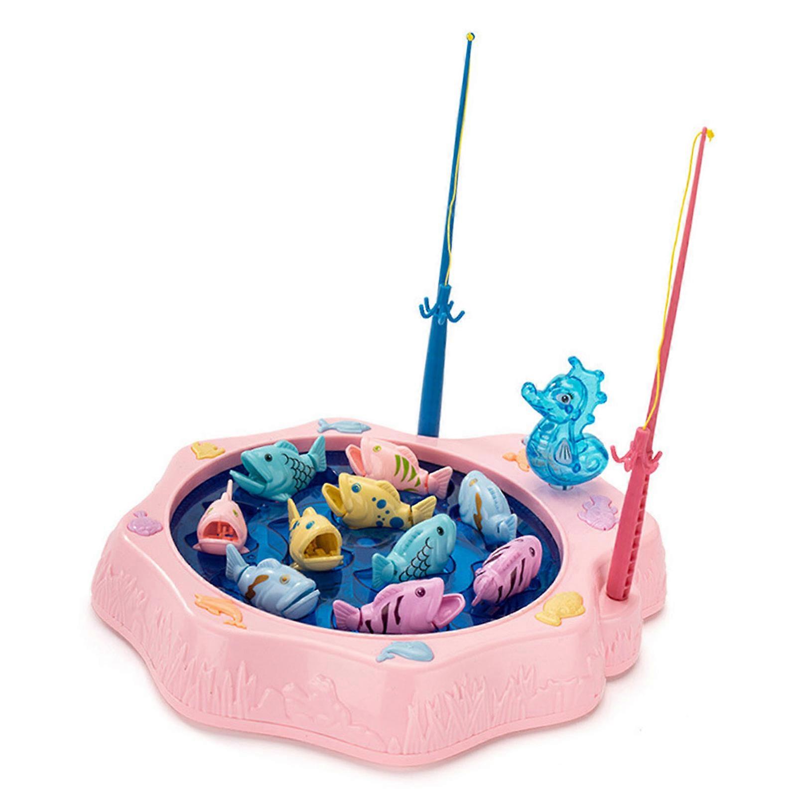 Engaging Fishing Playset for Boys and Girls Comes with 10 Colorful Fish and 2 Fishing Rods Pink