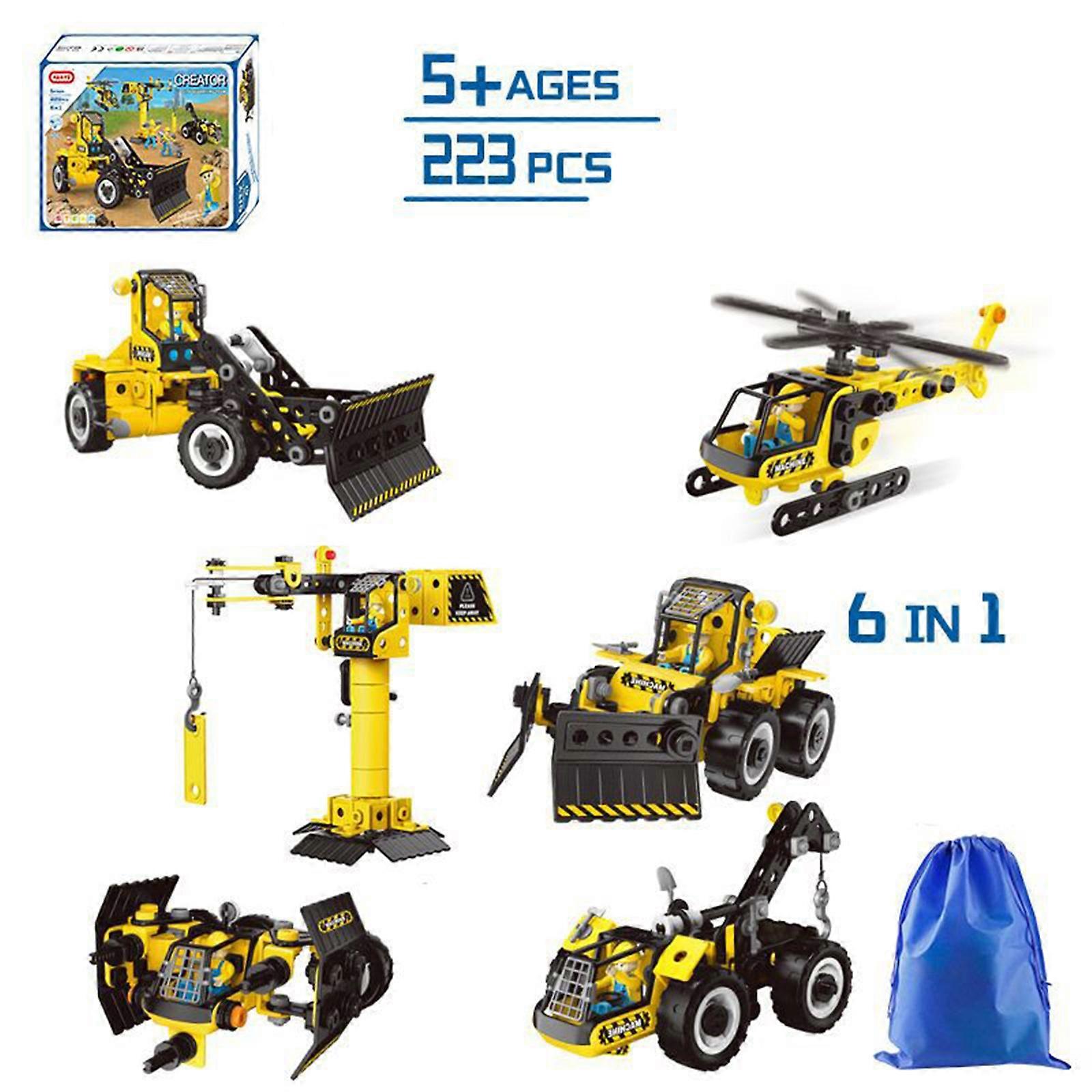 6-in-1 Kids Construction Vehicle Building Set, Includes Handy Storage Bag