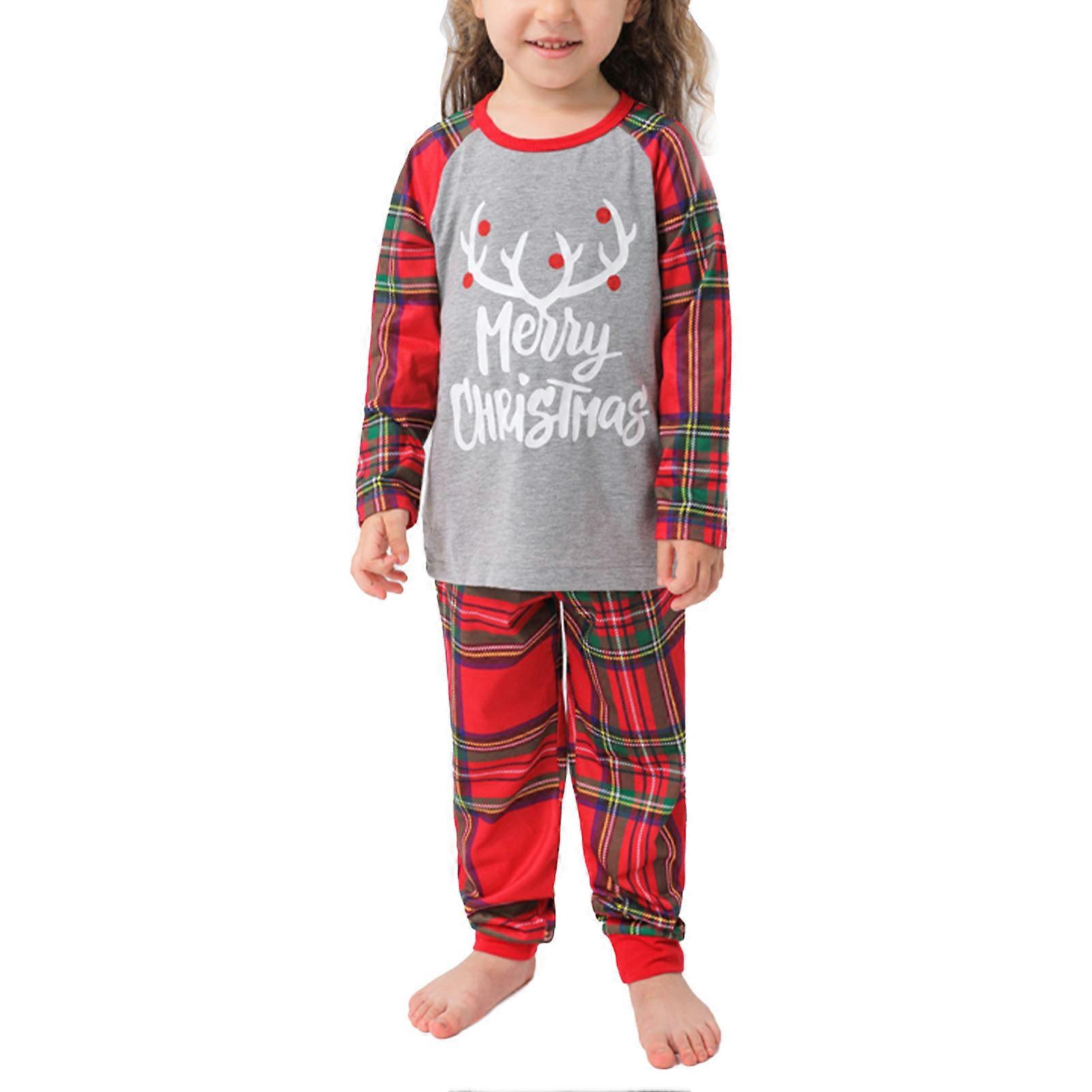 Family Matching Pajamas Set Christmas Adult Kids Baby Crewneck Plaid Colorblock Long Sleeve Sleepwear Set Family Pajamas Set Kids 89Y