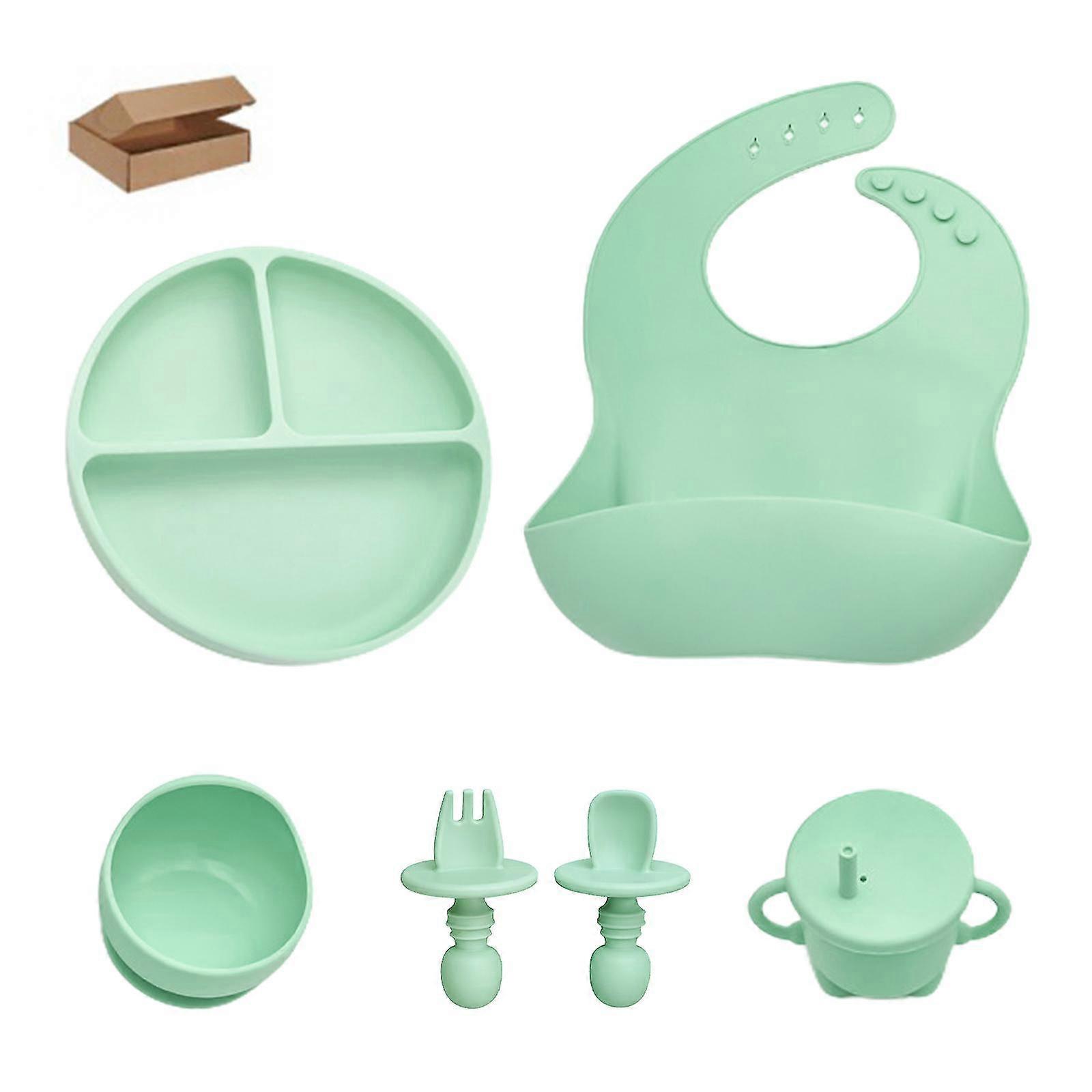 Silicone Baby Feeding Set - Silicone Bibs, Suction Divided Plate Bowls - Baby Cups Spoons - Perfect Baby Led Weaning Utensils Set