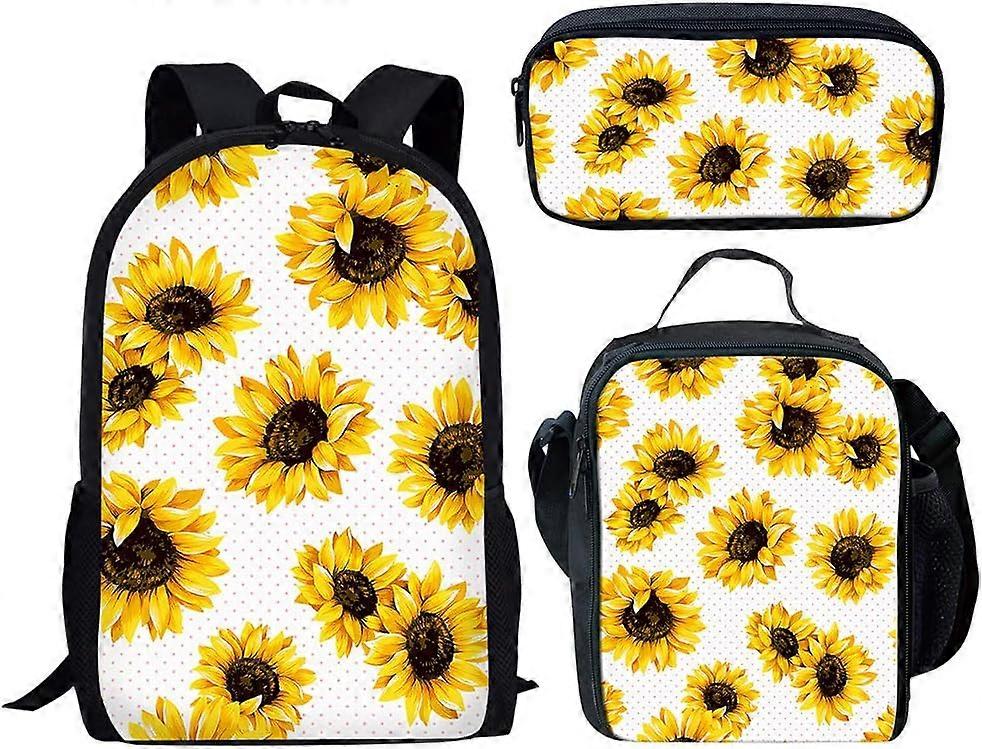 Teenagers Girls School Bags Set Sunflowers Pattern Schoolbag+Lunch Box+Pencil Holder Set for Kids Primary Schoolbag