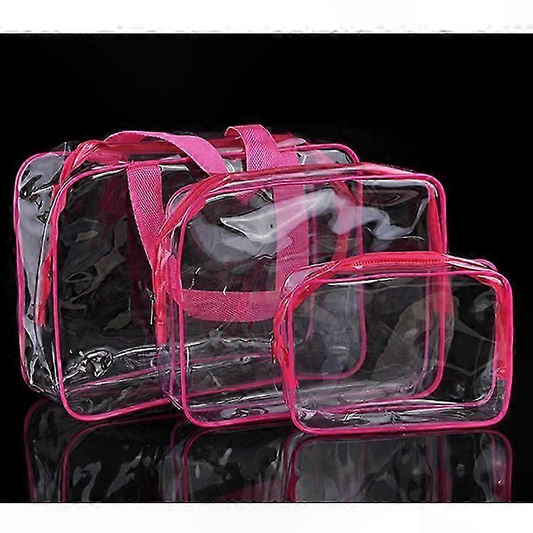 Transparent PVC Cosmetic Bag Set - 3pc Waterproof Travel Organizer with Rose Red Accent
