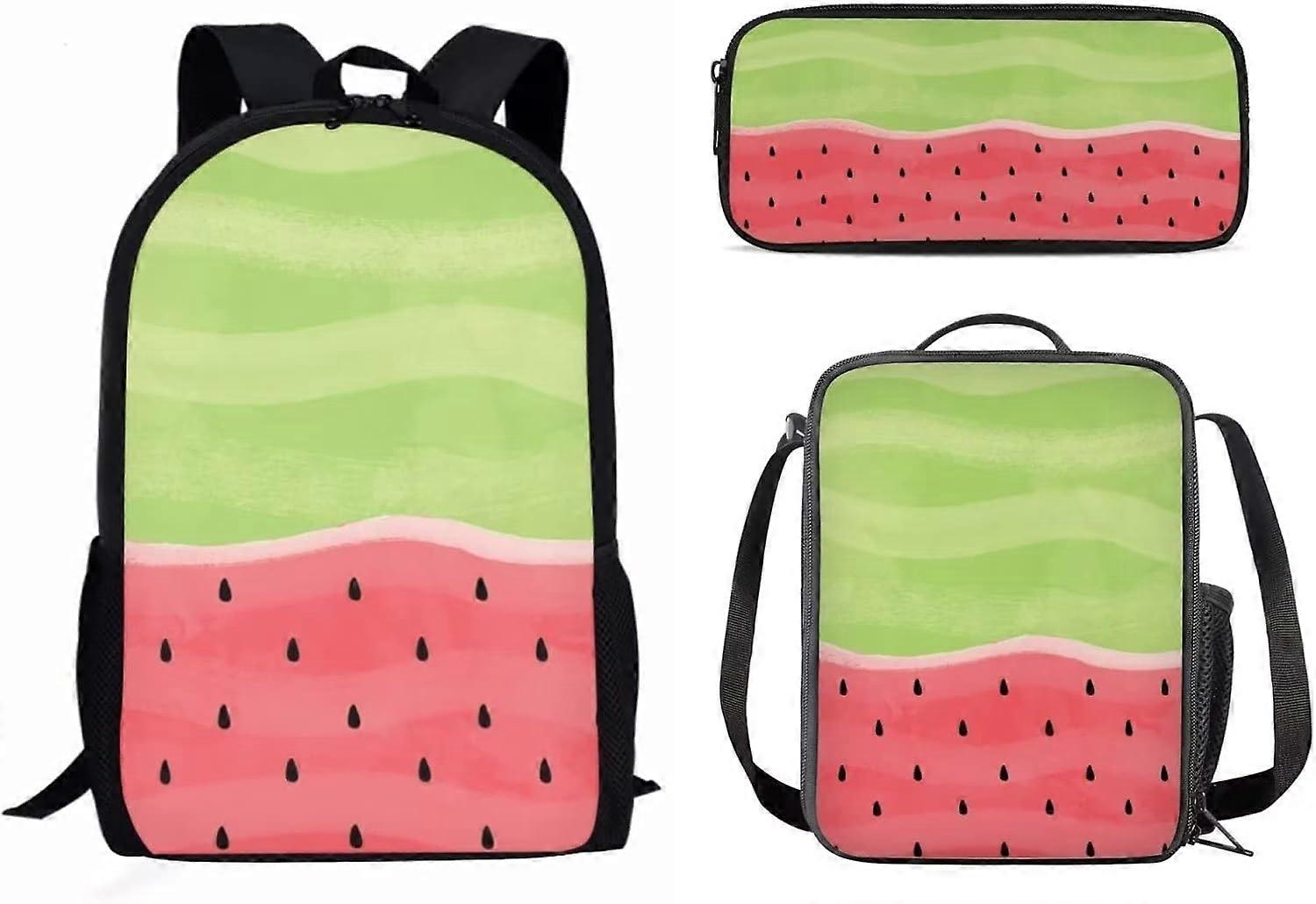 Kids Watermelon Bookbag Backpack Set for School Travel Camping, Large Capacity Shoulder Backpack Lunch Bag Student Pencil Pen Case 3 Packs