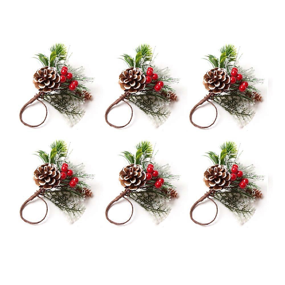 Napkin Rings Set of 6 Pine Needle Berries Christmas Napkin Rings