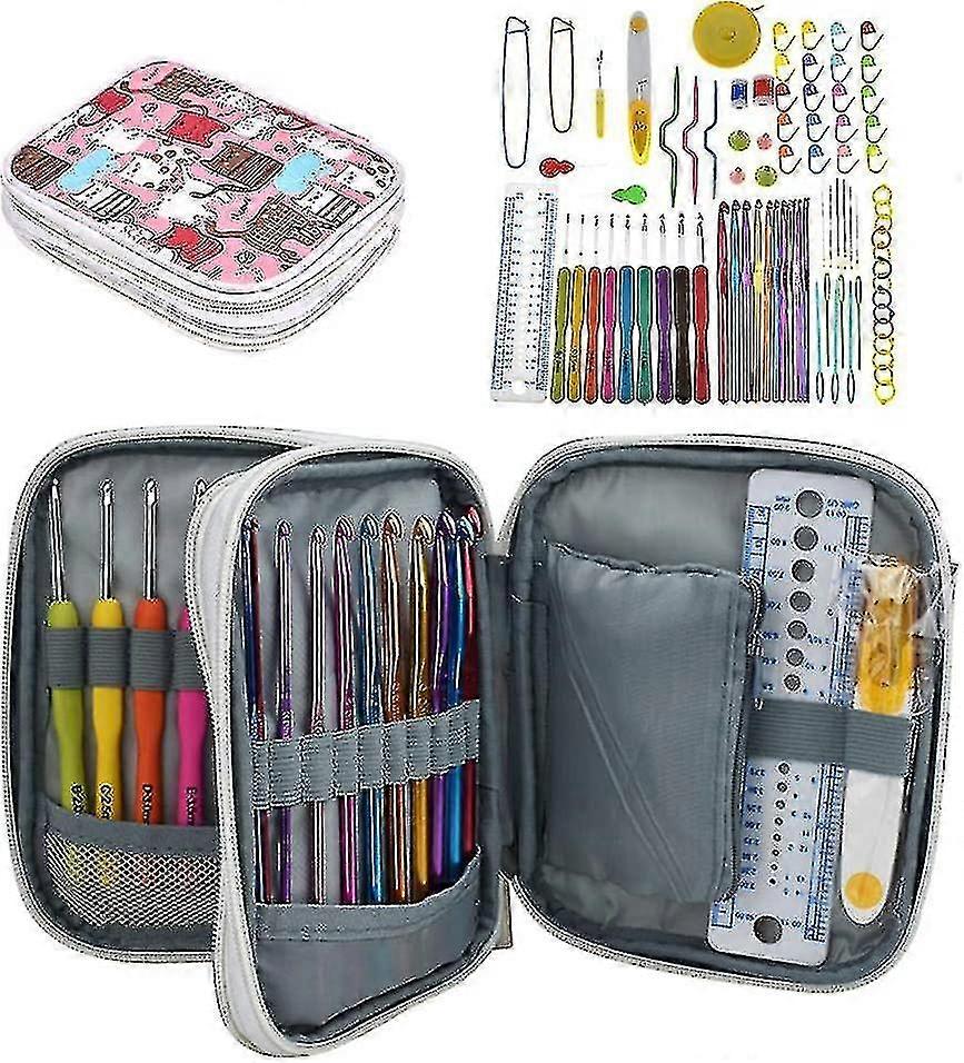 Crochet Hook Set, 85 Piece Crochet Tool, Ergonomic Knitting Needles With Complete Crochet Accessories And Bag With Double Zip Yl
