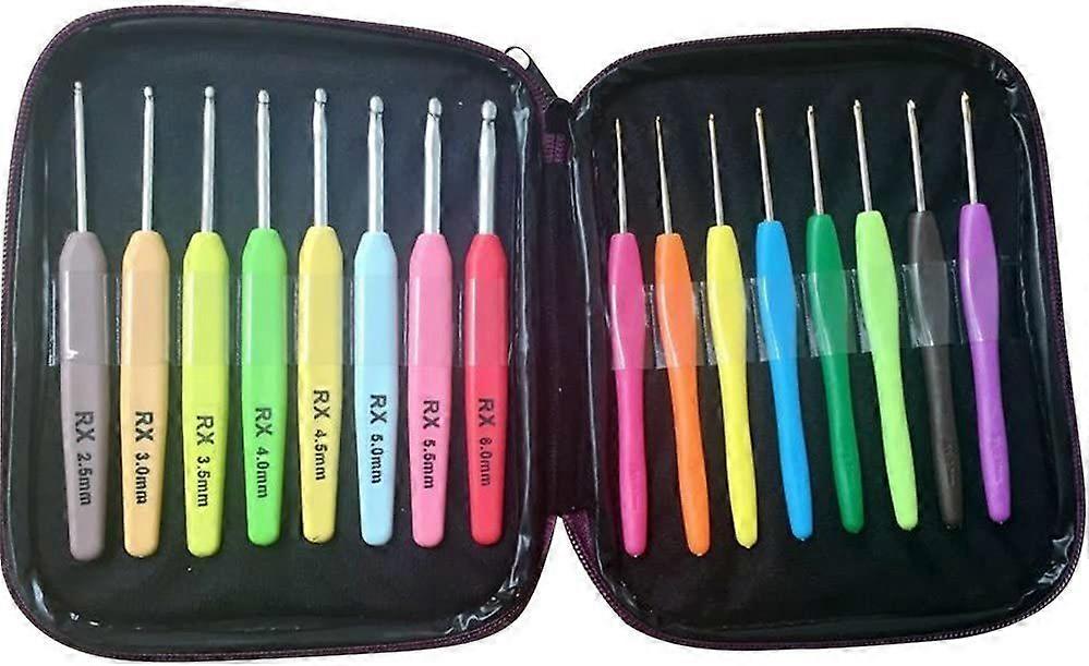 Crochet Hook Set 16pc Aluminum Hooks with Colorful Plastic Handles Knitting Needles Weave Yarn Case Set Best Gifts for Her