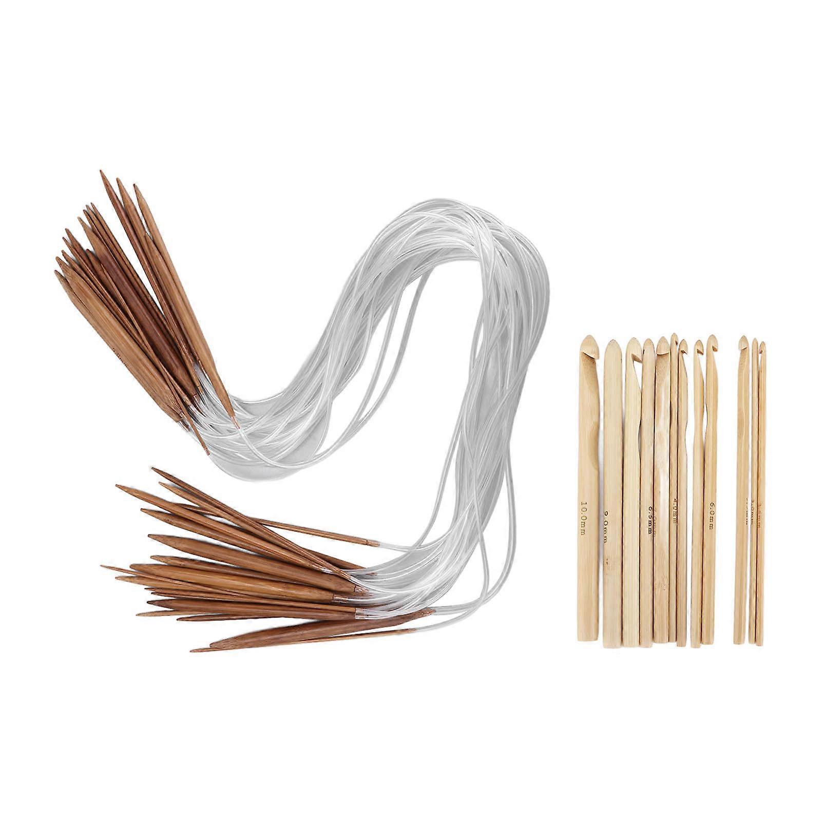 Crochet Hook Set 18 Pcs Bamboo Circular Knitting Needles 12 Sizes Crochet Kit for Household Weaving