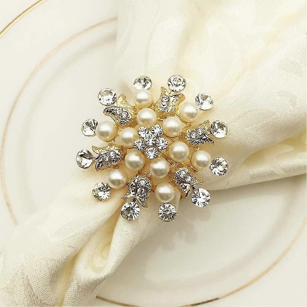 Napkin Rings Set Of 6-flower Pearl Rhinestone Napkin Ring Holder For Wedding